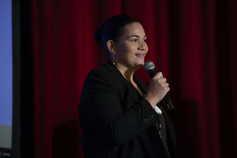 Hinamoeura Cross speaking at campaigners event in New York in 2025. Photo credit: ICAN